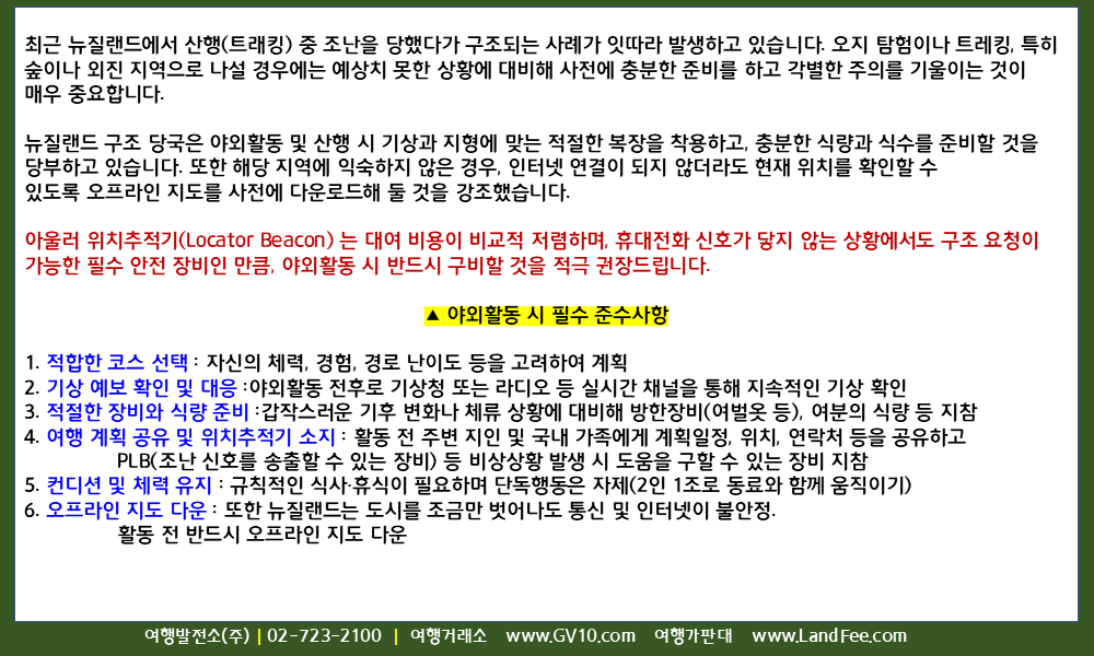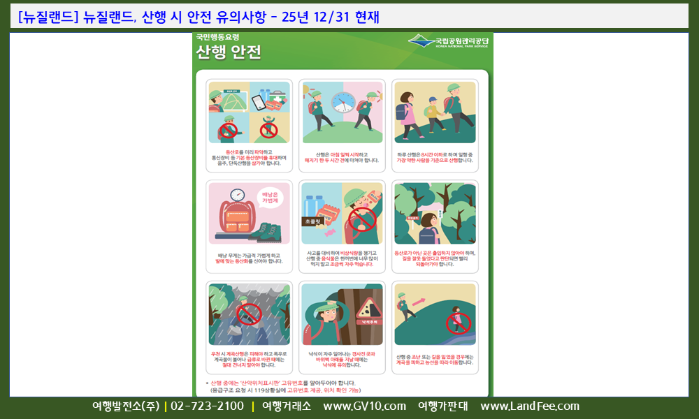 2. NZ Mountain Safety Council (트레킹, 캠핑, 응급처치 등 다양한 아웃도어 활동 안전수칙)