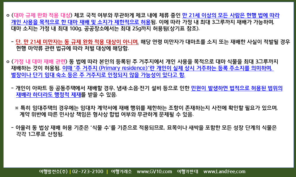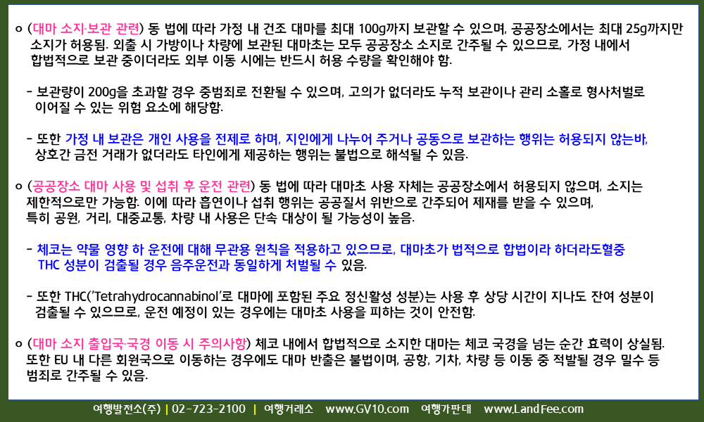 [체코] 체코 내 대마 관련 규제 완화 법안 시행 ( 26년 1/1 부터 ) - 26년 1/5 현재