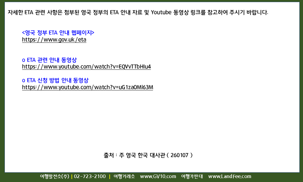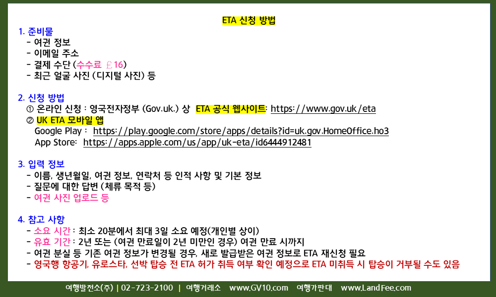 ① 온라인 신청 : 영국전자정부 (Gov.uk.) 상 ETA 공식 웹사이트: