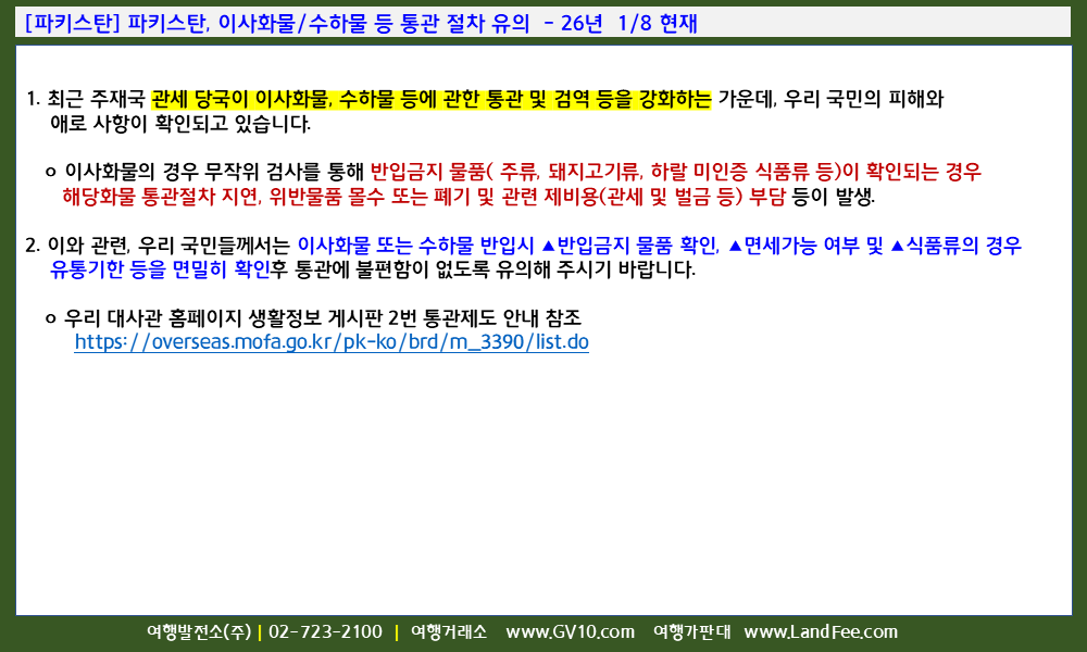 [파키스탄] 파키스탄, 이사화물/수하물 등 통관 절차 유의 - 26년 1/8 현재