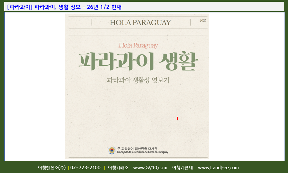 [파라과이] 파라과이, 생활 정보 - 26년 1/2 현재