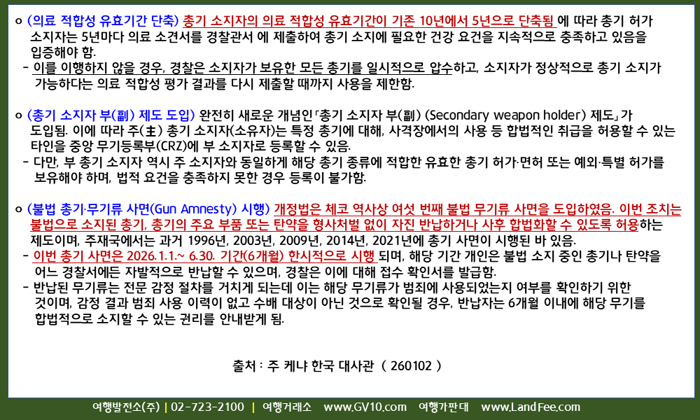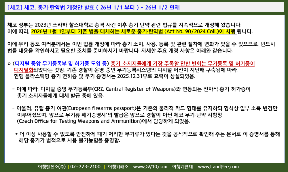 [체코] 체코, 총기·탄약법 개정안 발효 ( 26년 1/1 부터 ) - 26년 1/2 현재