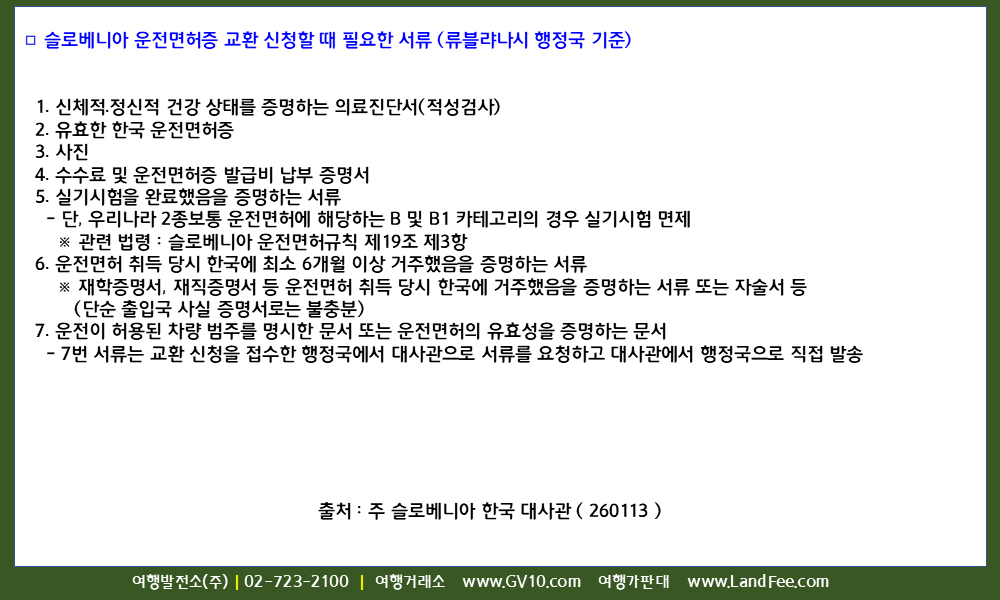 [슬로베니아] 슬로베니아, 한국 운전면허증 사용 정보 - 26년 1/13 현재