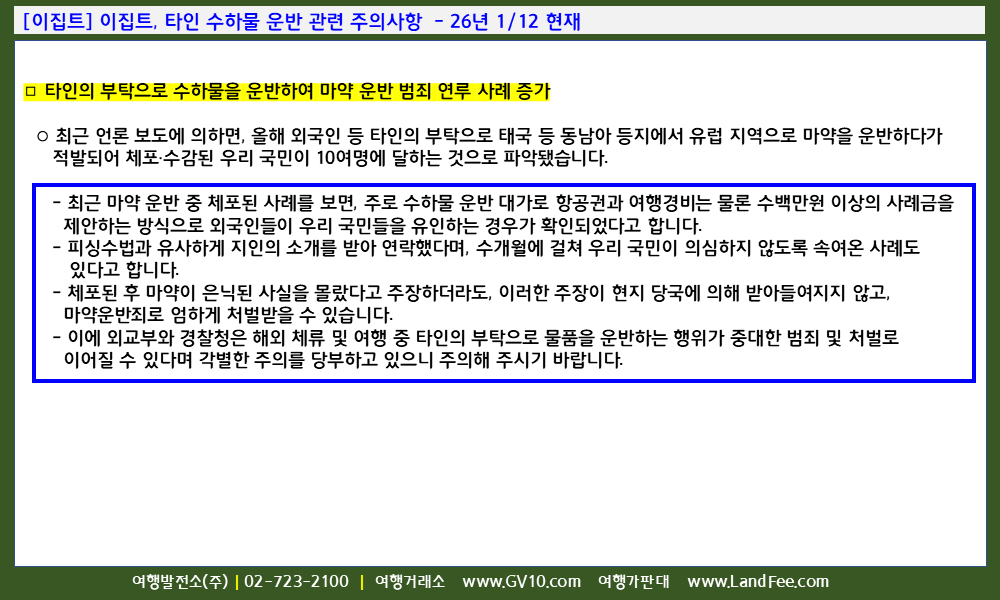 [이집트] 이집트, 타인 수하물 운반 관련 주의사항 - 26년 1/12 현재
