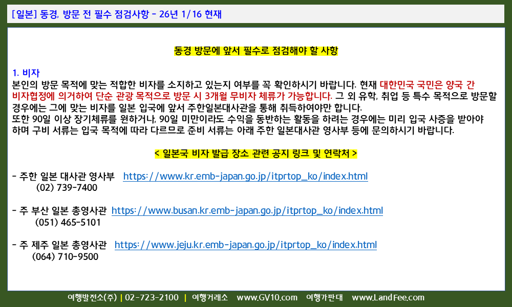 [일본] 동경, 방문 전 필수 점검사항 - 26년 1/16 현재