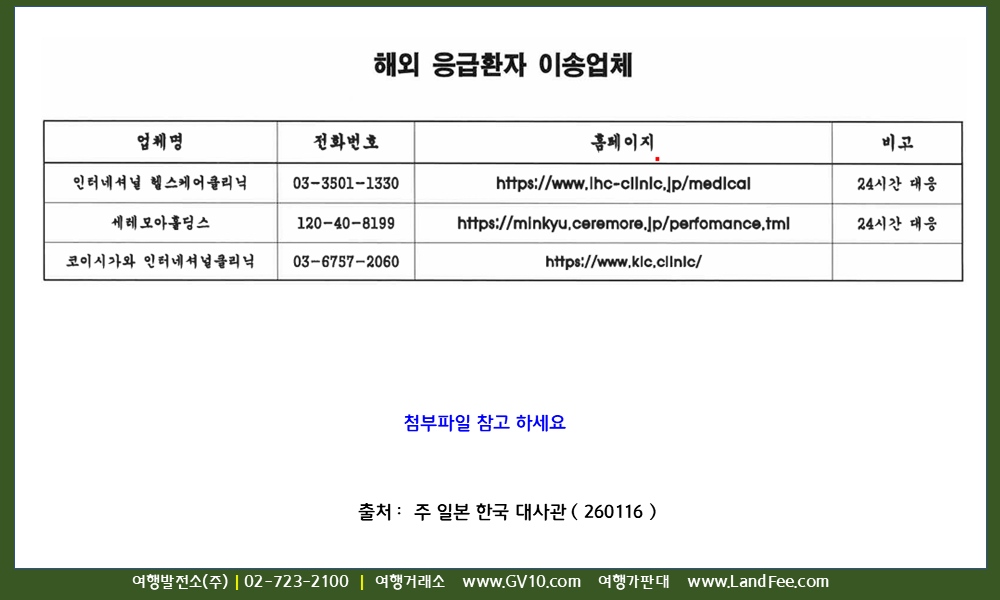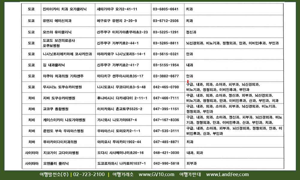 [일본] 동경 (도쿄)/치바/사이타마/군마/이바라기/토치기, 한국어 진료 가능 병원 - 26년 1/16 현재