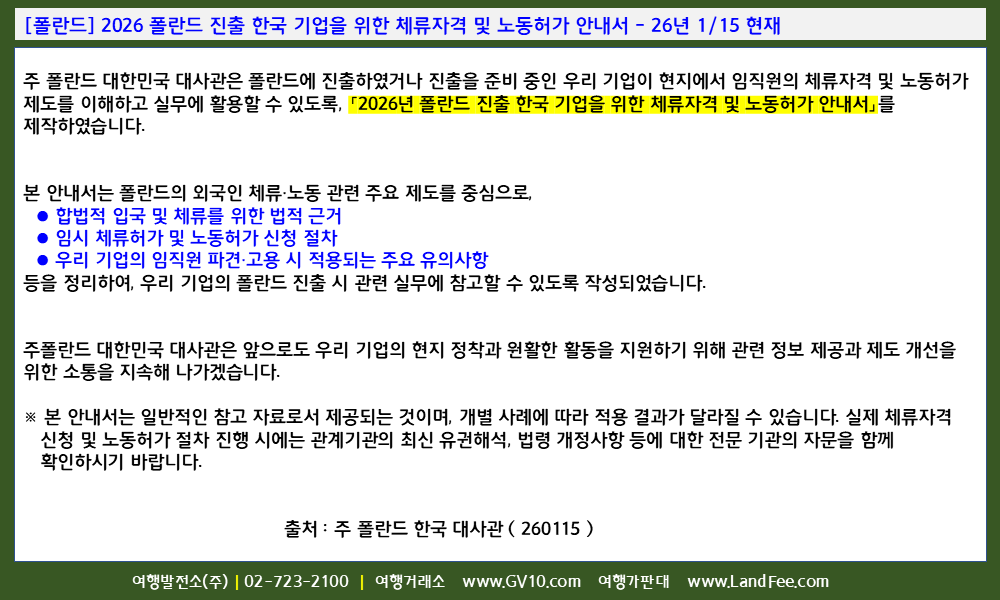 [폴란드] 2026 폴란드 진출 한국 기업을 위한 체류자격 및 노동허가 안내서 - 26년 1/15 현재