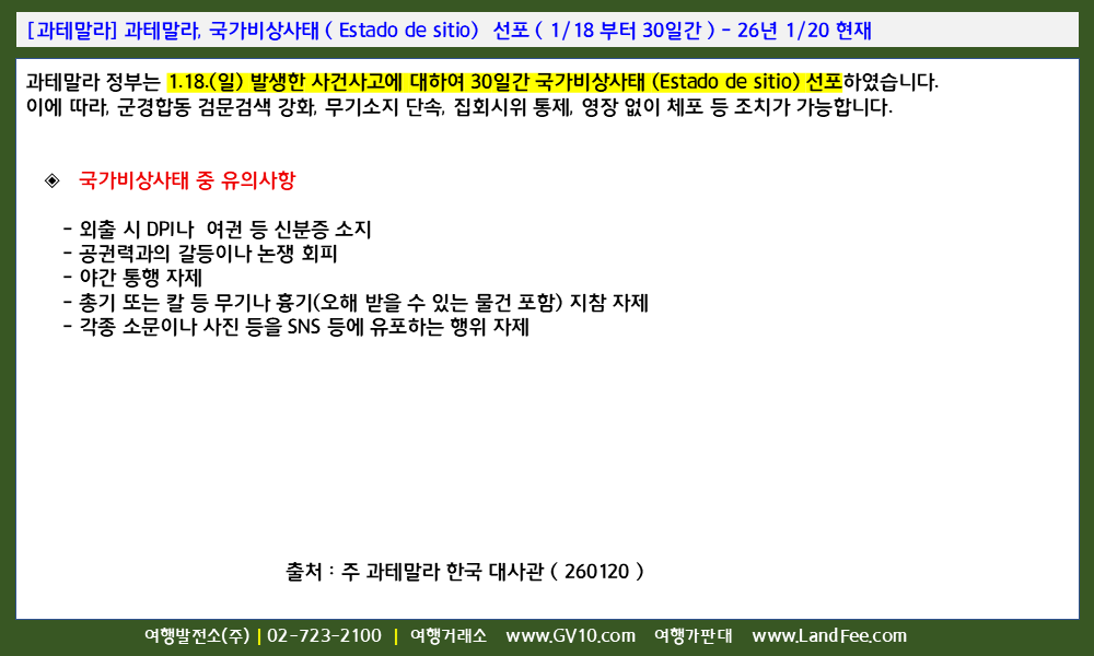 [과테말라] 과테말라, 국가비상사태 ( Estado de sitio) 선포 ( 1/18 부터 30일간 ) - 26년 1/20 현재