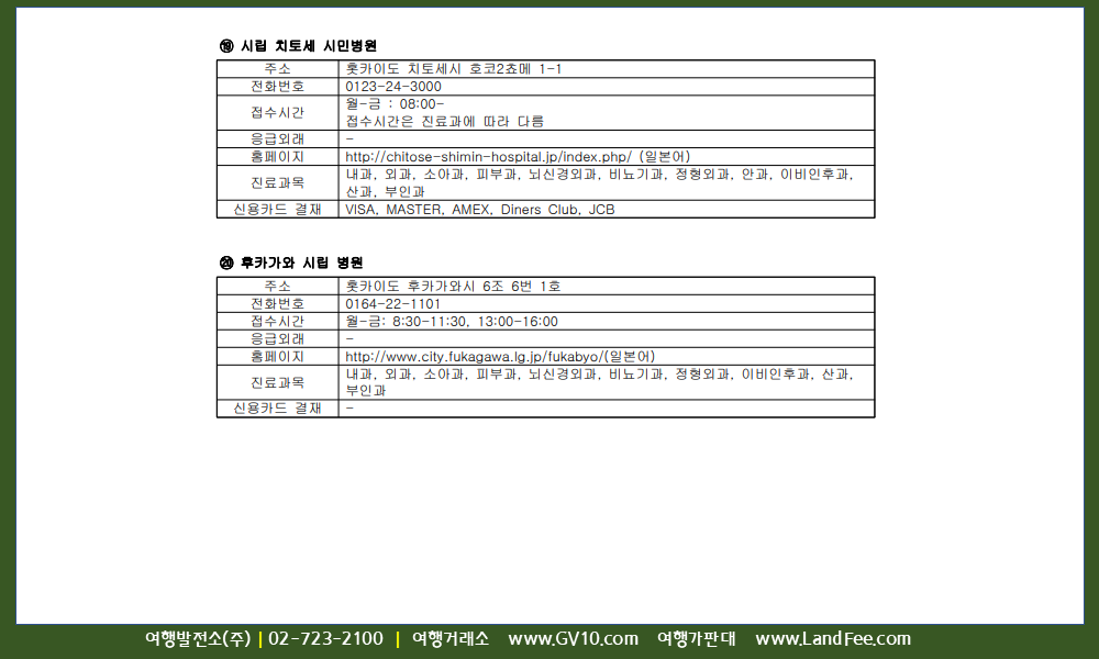 [일본] 삿포로, 한국어 대응가능 거점 의료기관 - 26년 1/19 현재
