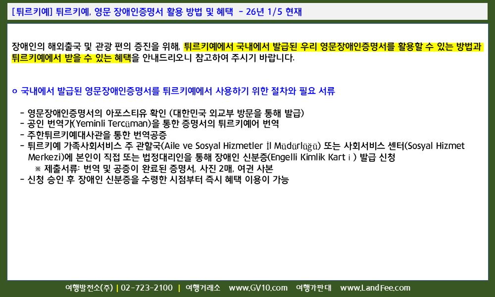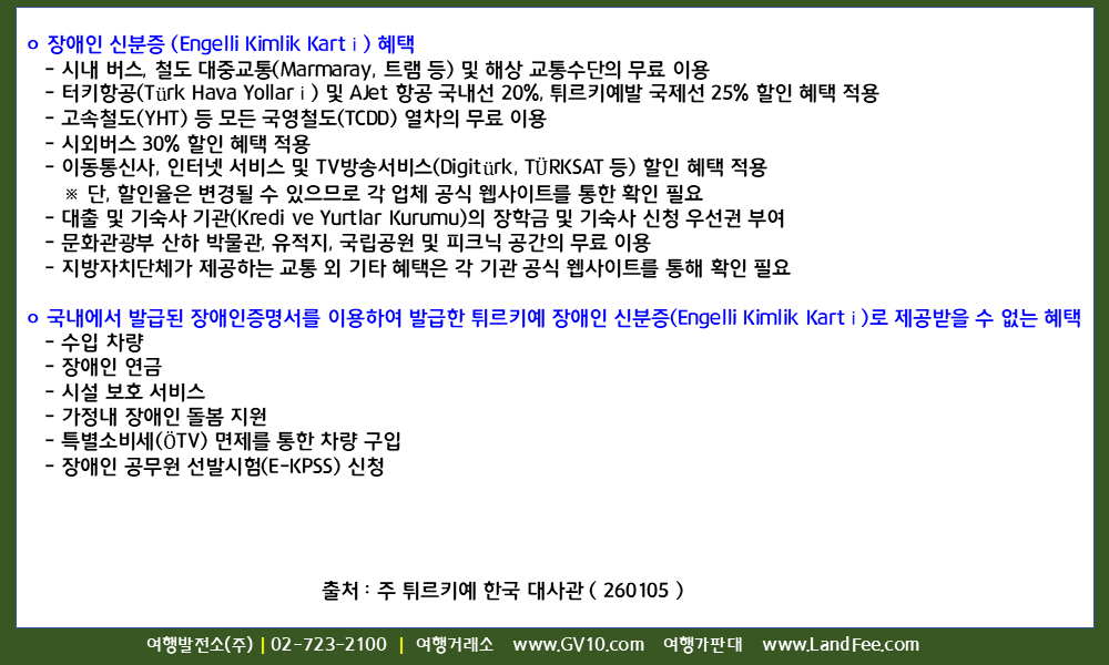 [튀르키예] 튀르키예, 영문 장애인증명서 활용 방법 및 혜택 - 26년 1/5 현재