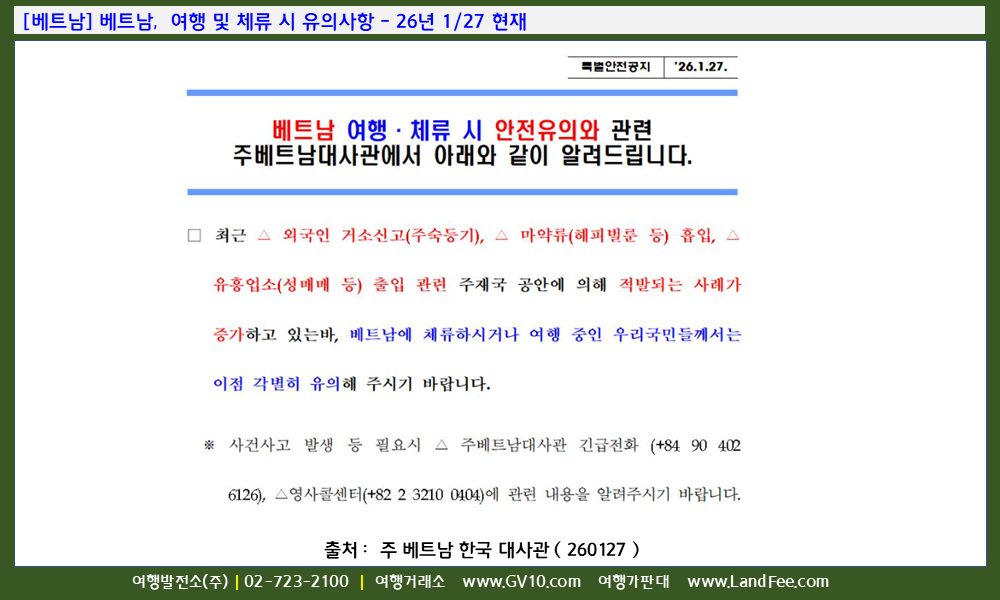 [베트남] 베트남, 여행 및 체류 시 유의사항 - 26년 1/27 현재