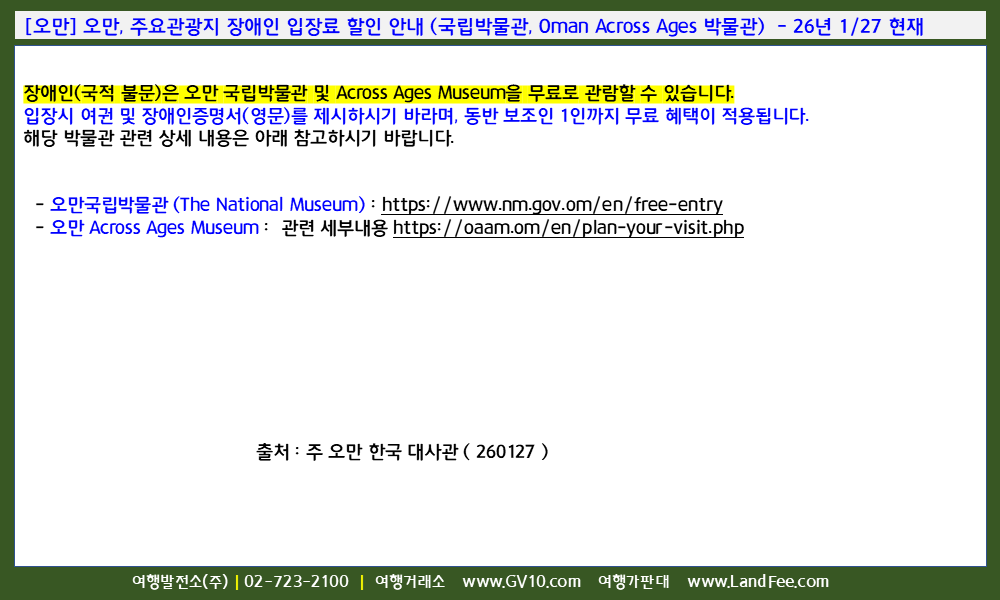 -오만 국립박물관 (The National Museum) : https://www.nm.gov.om/en/free-entry