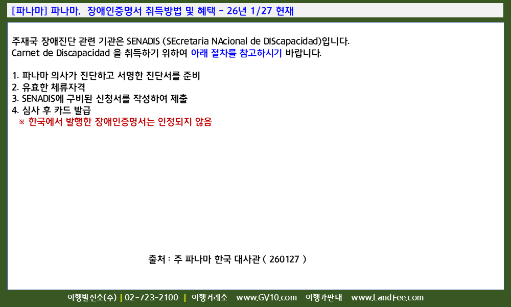 [파나마] 파나마, 장애인증명서 취득방법 및 혜택 - 26년 1/27 현재