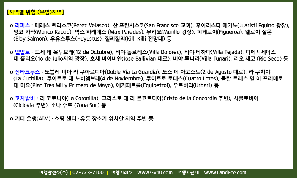 [볼리비아] 볼리비아, 안전여행 길잡이 - 26년 1/29 현재