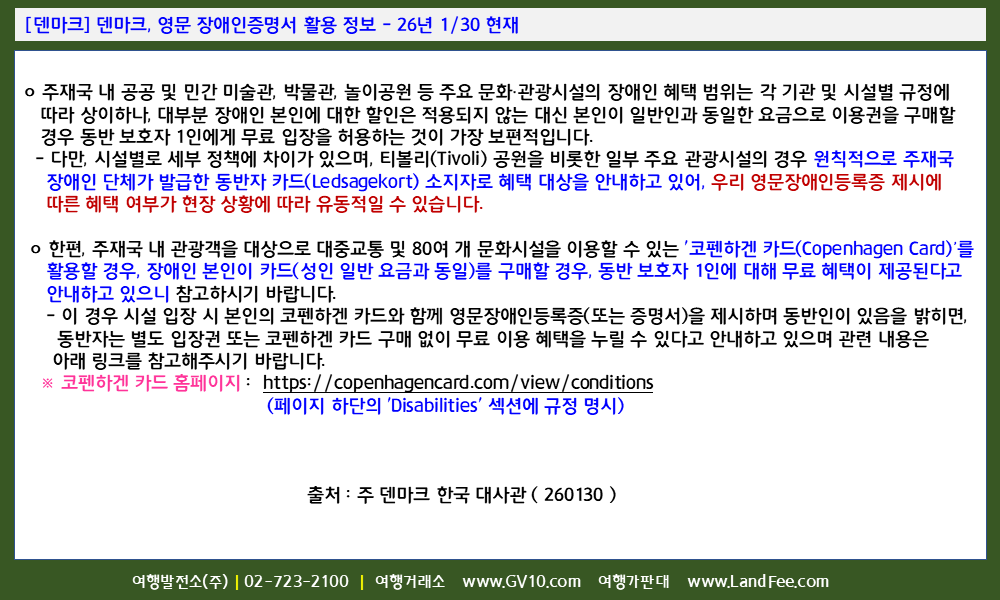 [덴마크] 덴마크, 영문 장애인증명서 활용 정보 - 26년 1/30 현재