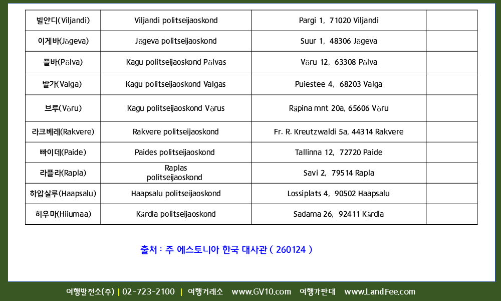 [에스토니아] 에스토니아, 경찰서 신고번호 및 위치 정보 - 26년 1/24 현재