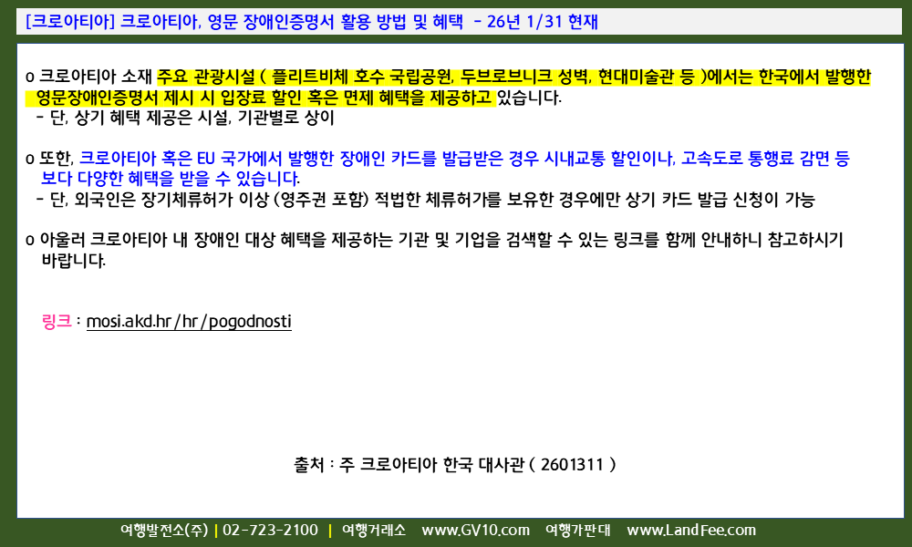 [크로아티아] 크로아티아, 영문 장애인증명서 활용 방법 및 혜택 - 26년 1/31 현재