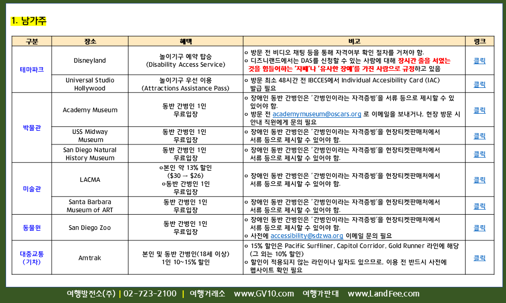 [미국] 남가주, 네바다주, 아리조나주, 뉴멕시코주 -> 장애인증명서 (영문) 활용 혜택 - 26년 2/3 현재