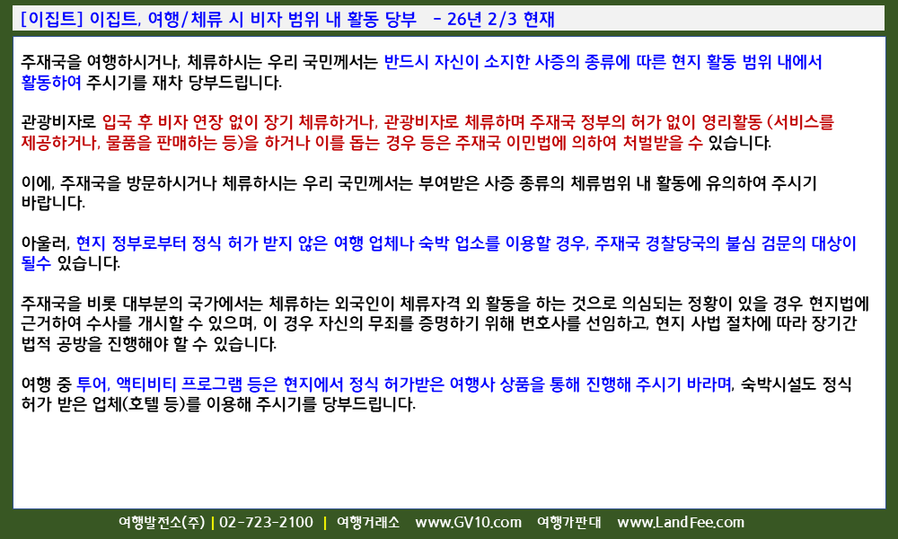 [이집트] 이집트, 여행/체류 시 비자 범위 내 활동 당부 - 26년 2/3 현재