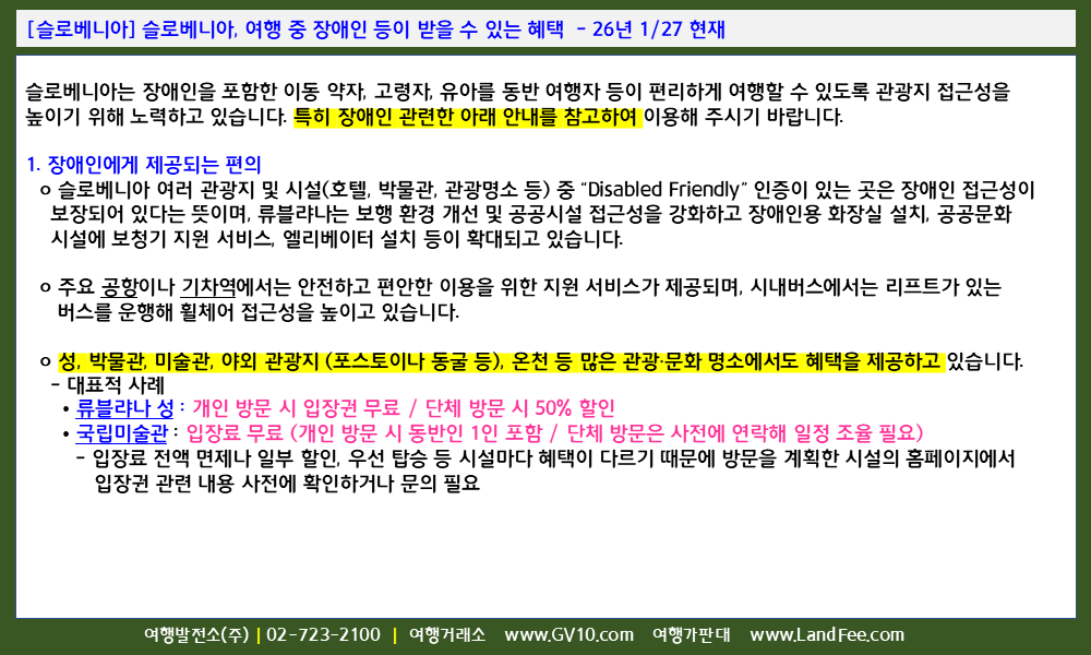 [슬로베니아] 슬로베니아, 여행 중 장애인 등이 받을 수 있는 혜택 - 26년 1/27 현재