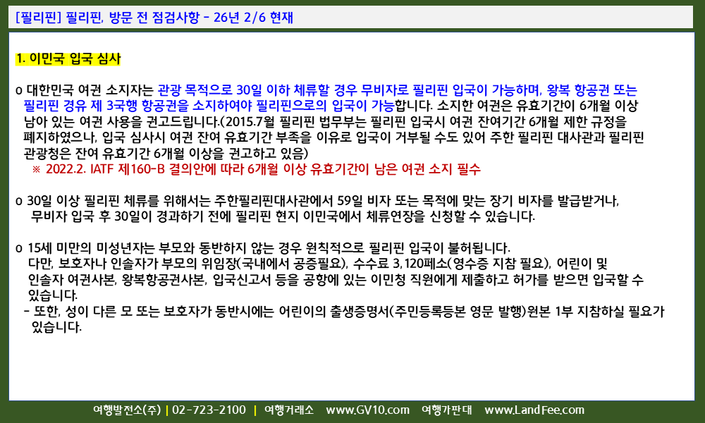 [필리핀] 필리핀, 방문 전 점검사항 - 26년 2/6 현재