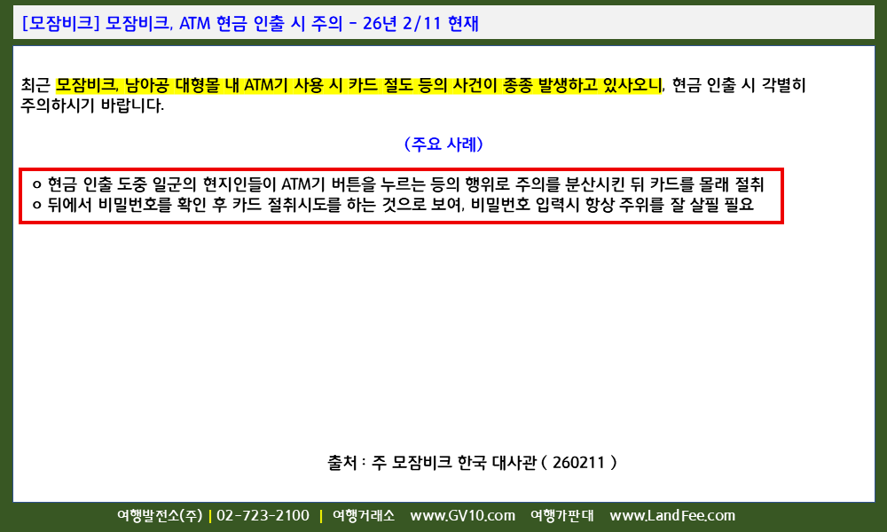 [모잠비크] 모잠비크, ATM 현금 인출 시 주의 - 26년 2/11 현재