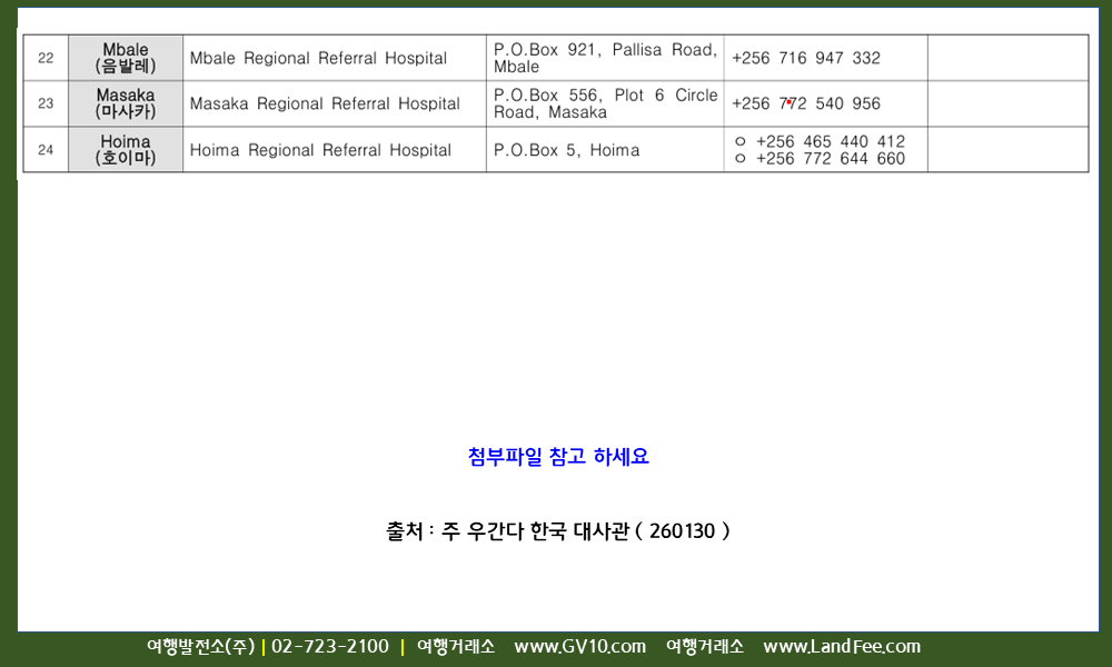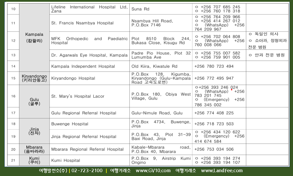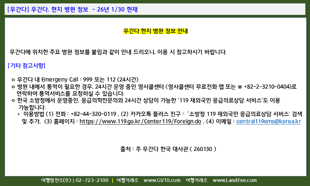 [우간다] 우간다, 현지 병원 정보 - 26년 1/30 현재