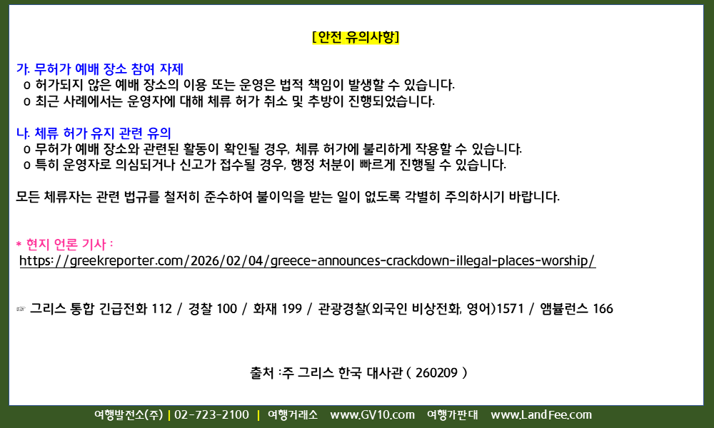 [그리스] 그리스, 종교시설 이용 시 유의사항 - 26년 2/9 현재