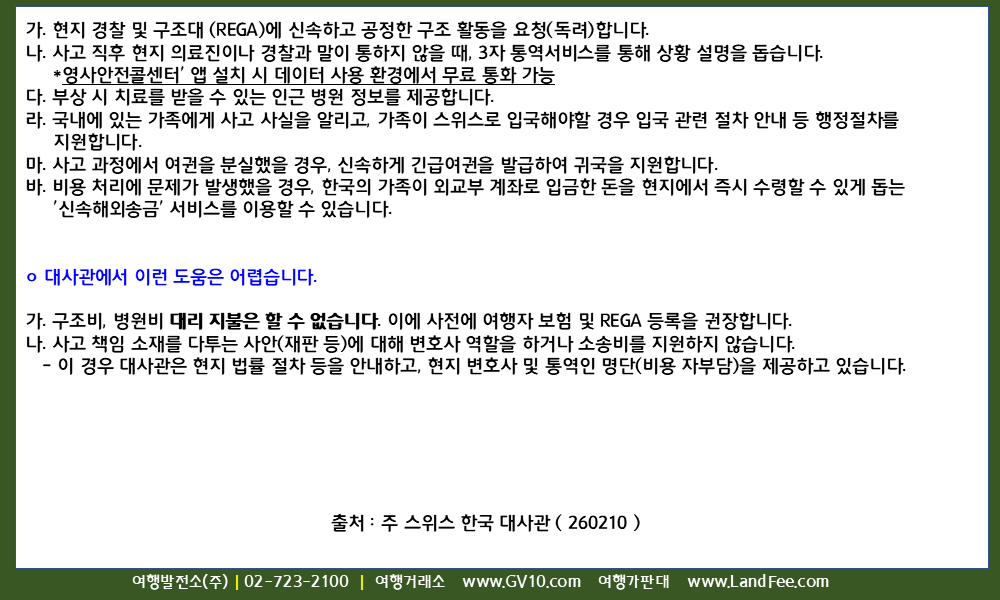 유럽 > 스위스 > 베른/취리히/제네바/인터라켄 > 현지정보