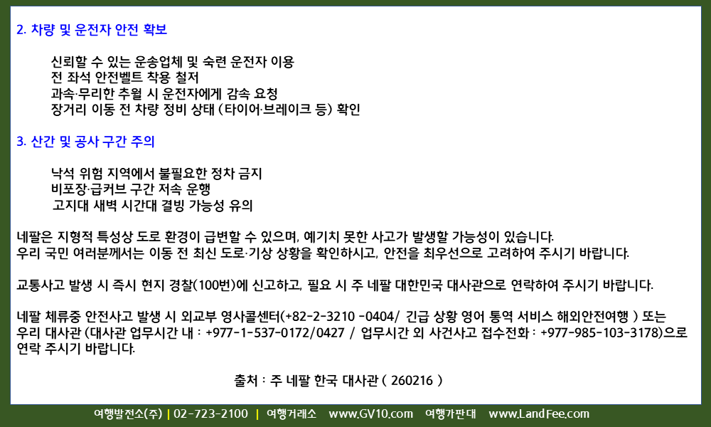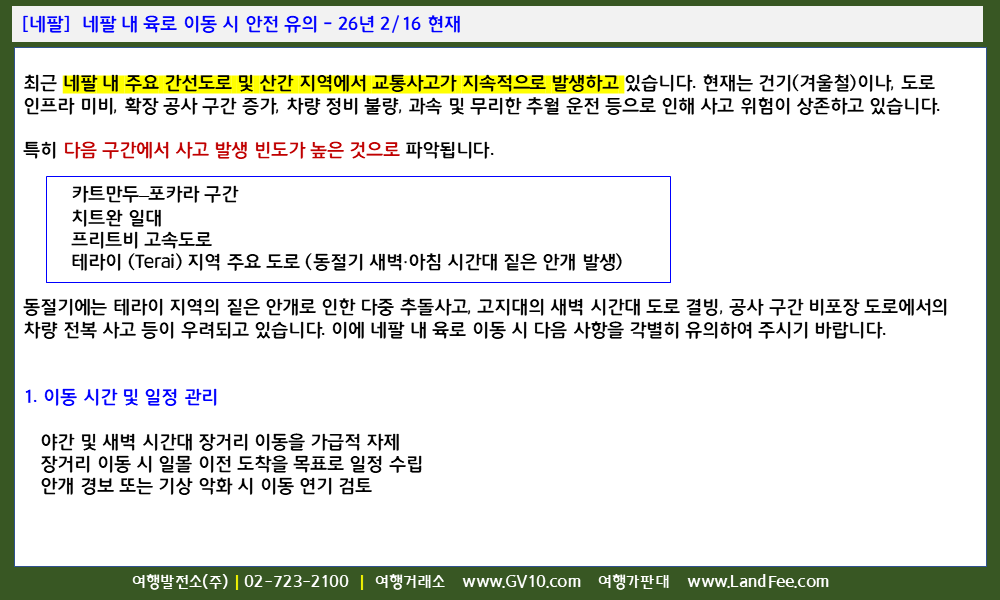[네팔] 네팔 내 육로 이동 시 안전 유의 - 26년 2/16 현재