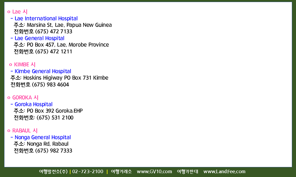 [파푸아뉴기니] 파푸아뉴기니, 병원 및 긴급 연락처 - 26년 2/19 현재