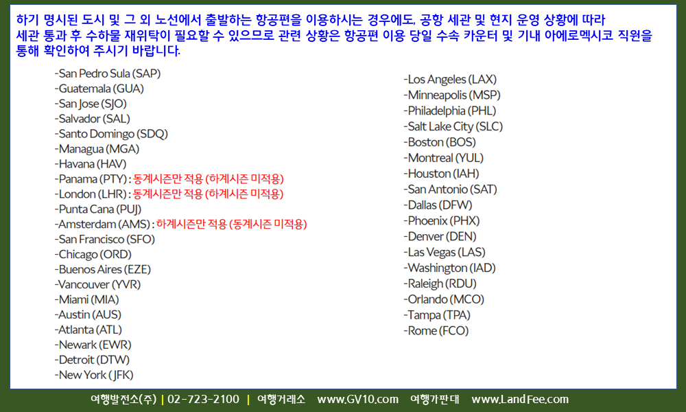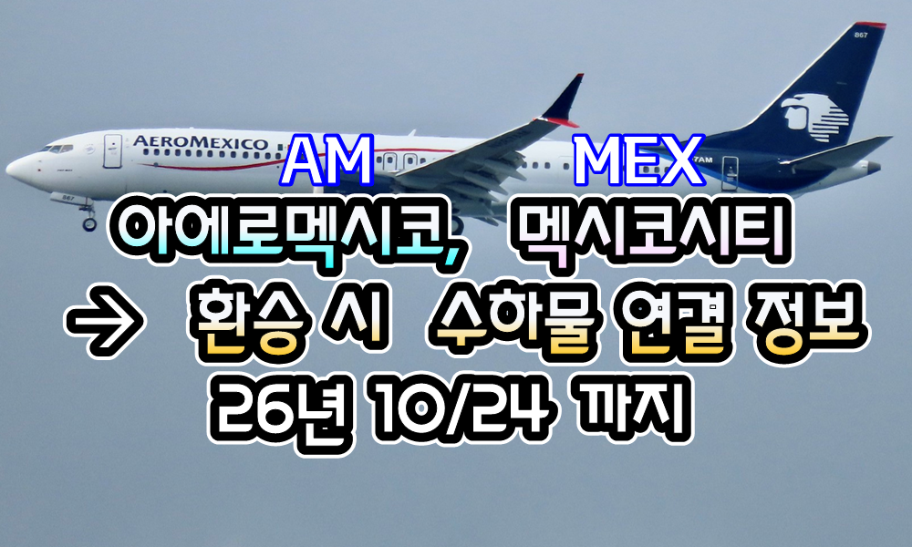 [멕시코] 아에로멕시코 ( AM ), 멕시코시티 공항 ( AM ) -> 환승 시 수하물 연결 정보 ( 10/24 까지 ) - 26년 2/27 현재
