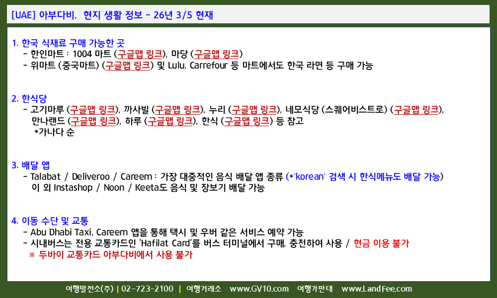 - 한인마트 : 1004 마트 (구글맵 링크), 마당 (구글맵 링크)