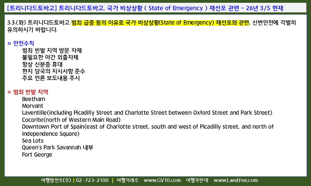 [트리니다드토바고] 트리니다드토바고, 국가 비상상황 ( State of Emergency ) 재선포 관련 - 26년 3/5 현재