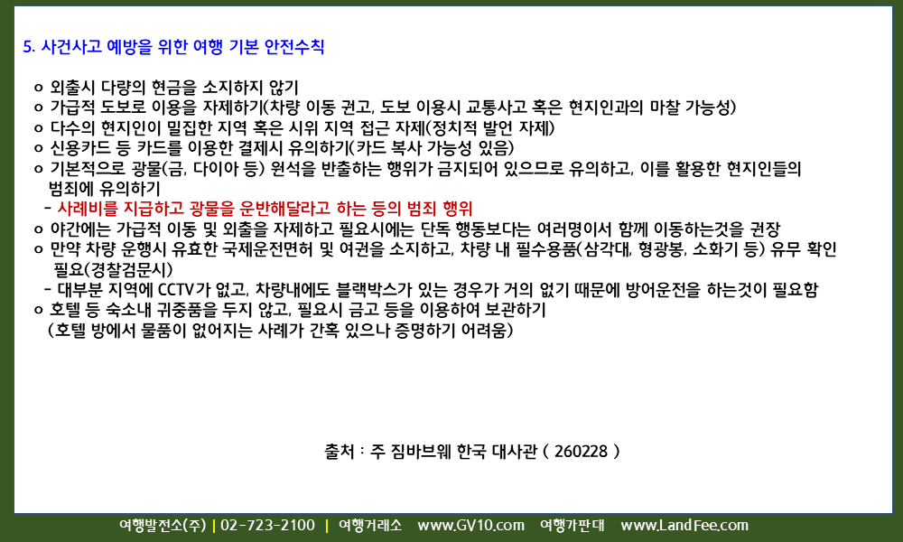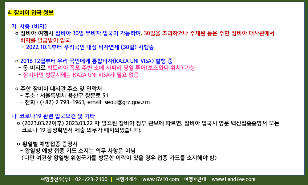 [잠비아] 잠비아, 입국정보 및 안전여행 길잡이 – 26년 2/28 현재