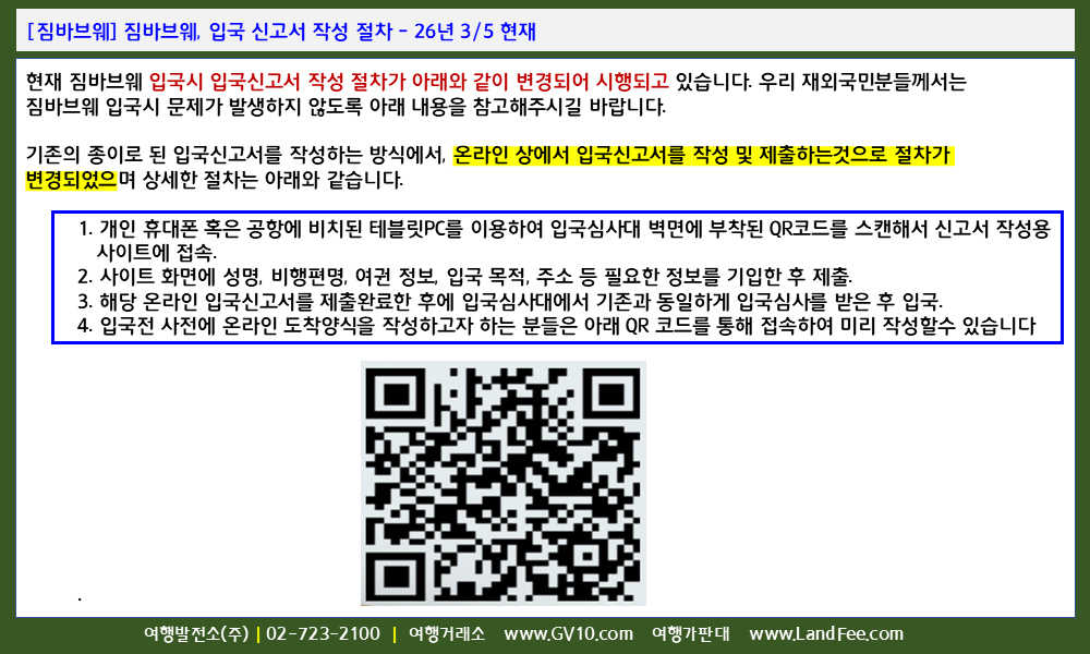 [짐바브웨] 짐바브웨, 입국 신고서 작성 절차 - 26년 3/5 현재