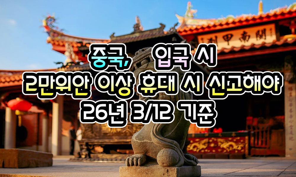 [중국] 중국, 입국 시 -> 2만 위안 초과 현금 휴대 시 신고해야 - 26년 3/12 현재