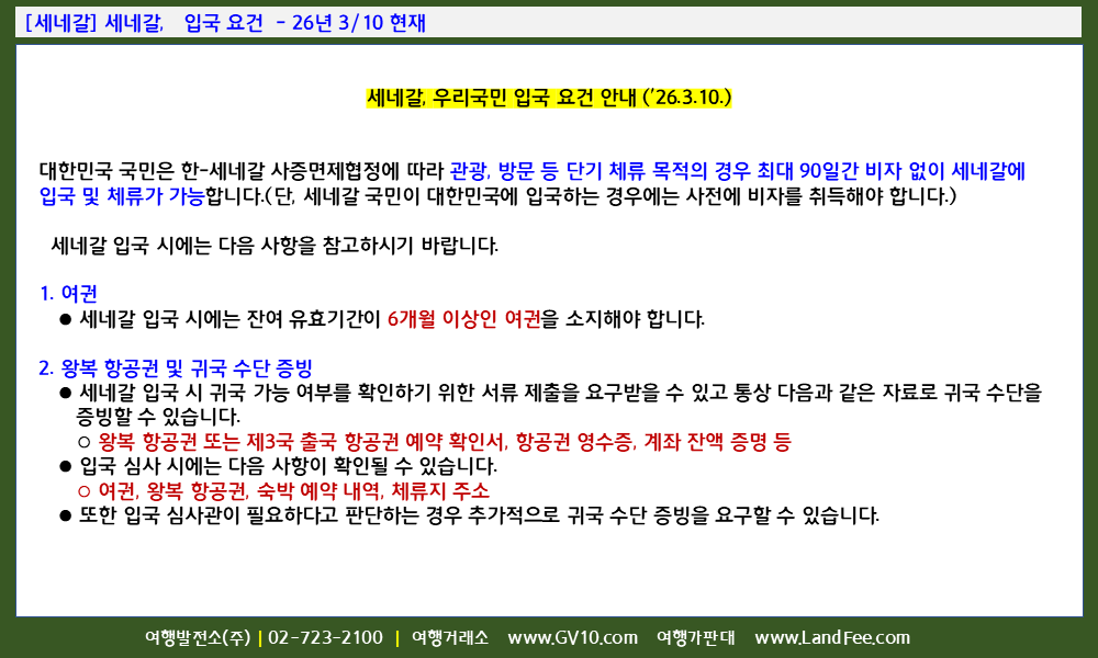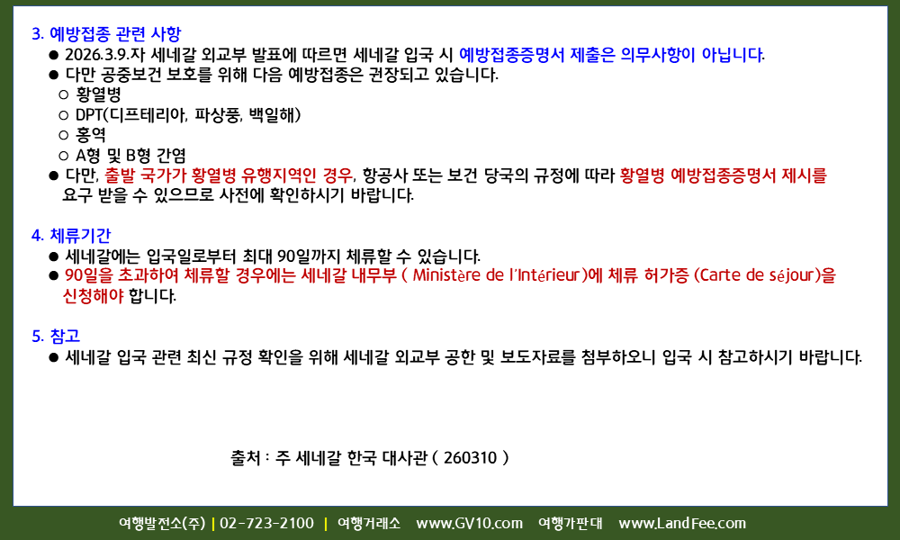 [세네갈] 세네갈, 입국 요건 - 26년 3/10 현재