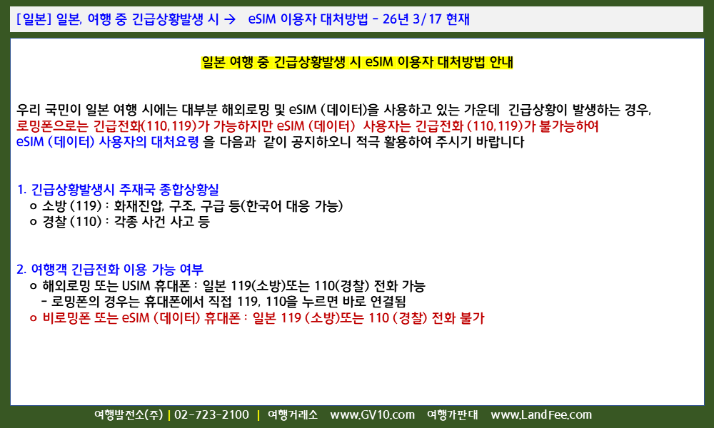 [일본] 일본, 여행 중 긴급상황발생 시 -> eSIM 이용자 대처방법 - 26년 3/17 현재