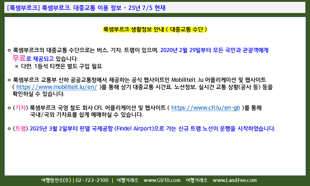 [룩셈부르크] 룩셈부르크, 대중교통 이용 정보 - 25년 7/5 현재