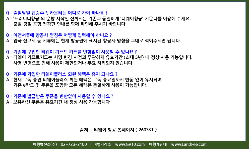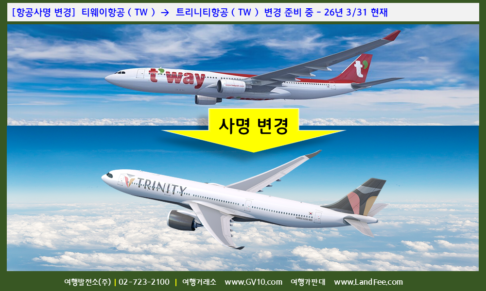 [항공사명 변경] 티웨이항공 ( TW ) -> 트리니티항공 ( TW ) 변경 준비 중 - 26년 3/31 현재