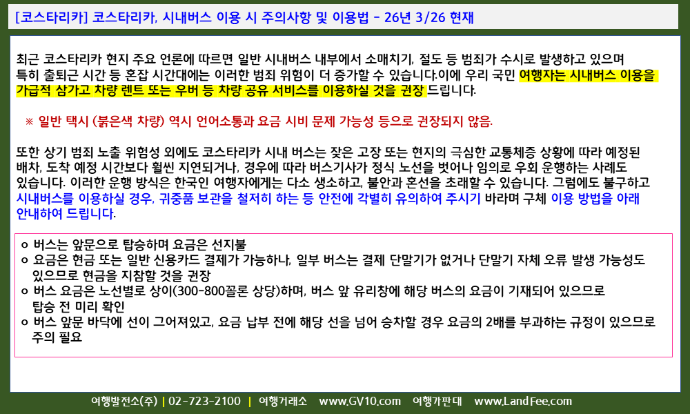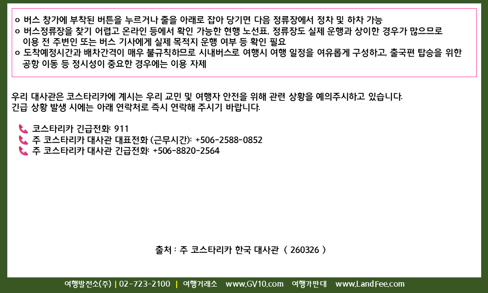 [코스타리카] 코스타리카, 시내버스 이용 시 주의사항 및 이용법 - 26년 3/26 현재
