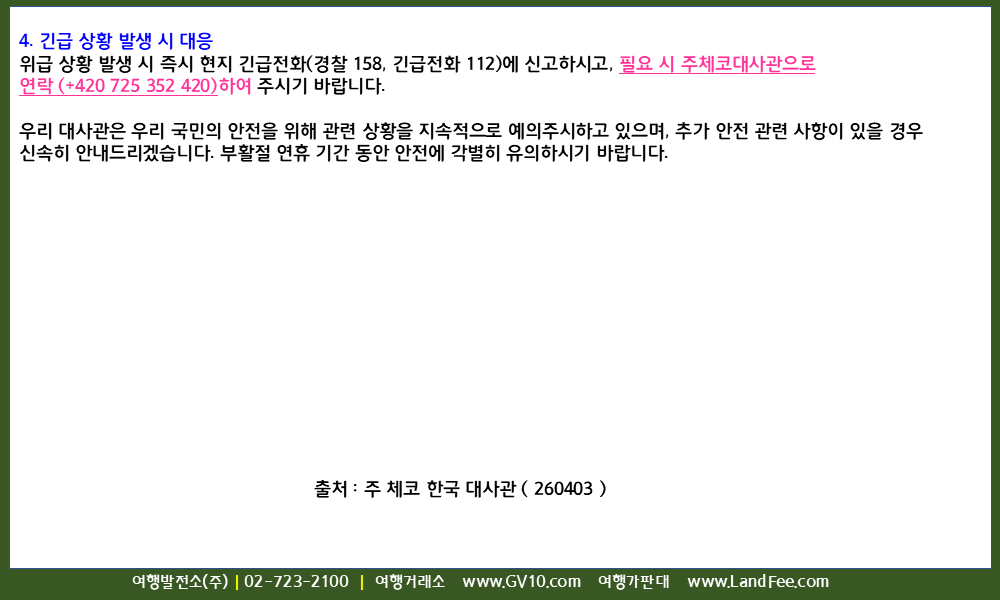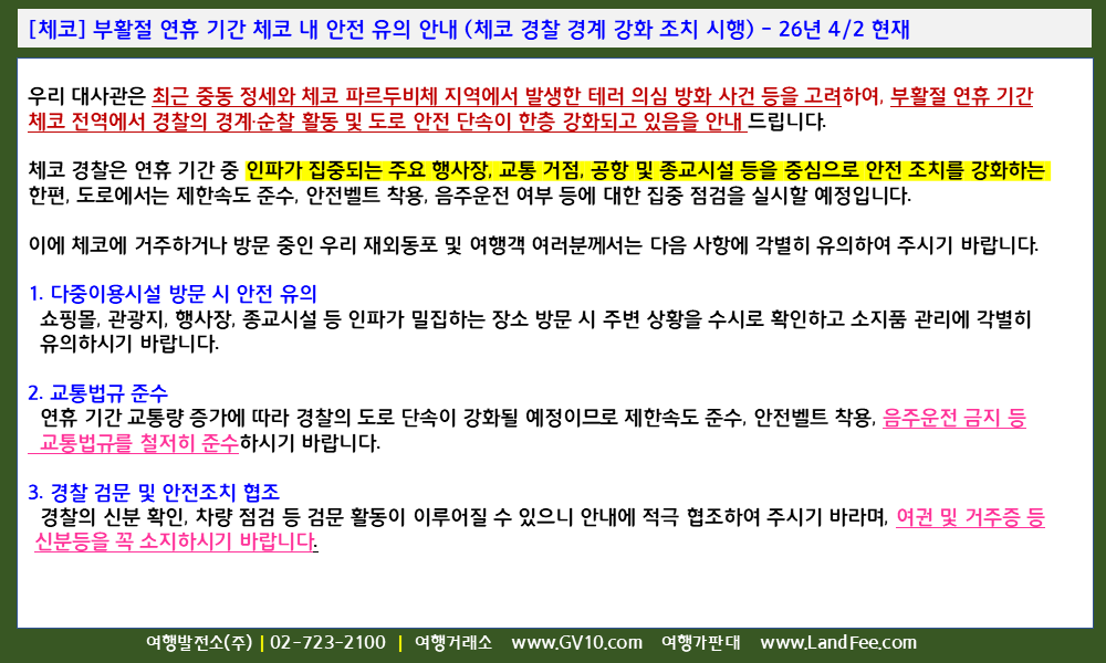 [체코] 부활절 연휴 기간 체코 내 안전 유의 안내 (체코 경찰 경계 강화 조치 시행) - 26년 4/2 현재