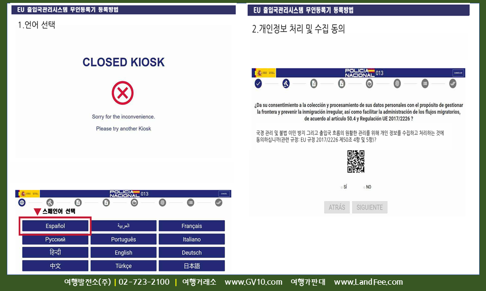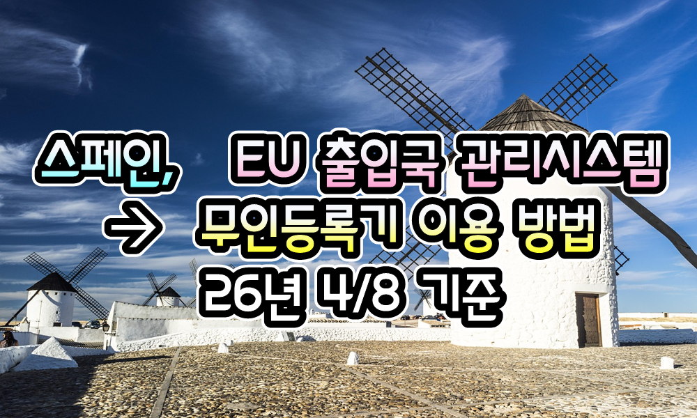 [스페인] 스페인, 입국 시 -> EU 출입국 관리시스템 무인등록기 이용 방법 - 26년 4/9 현재
