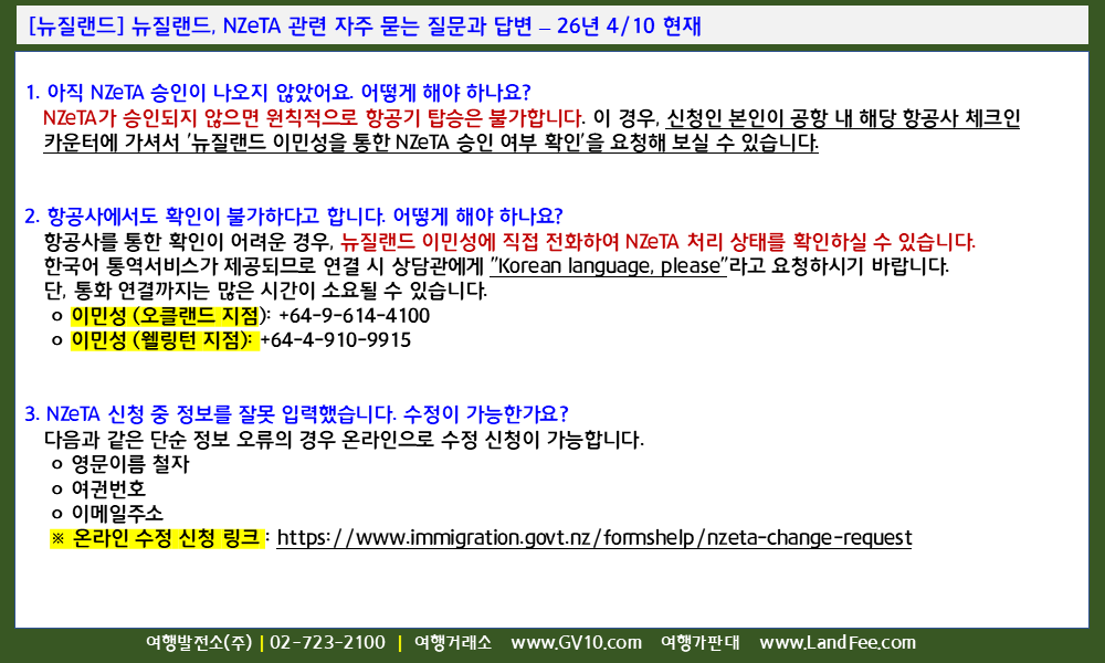 NZeTA (정보수정, 환불, 처리기간 등), 비자 신청 및 체류자격 변경, 입국 등