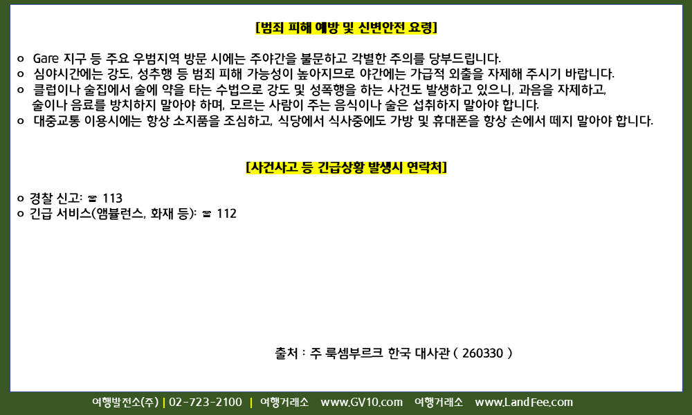 [룩셈부르크] 룩셈부르크, 안전여행 길잡이 - 26년 3/30 현재
