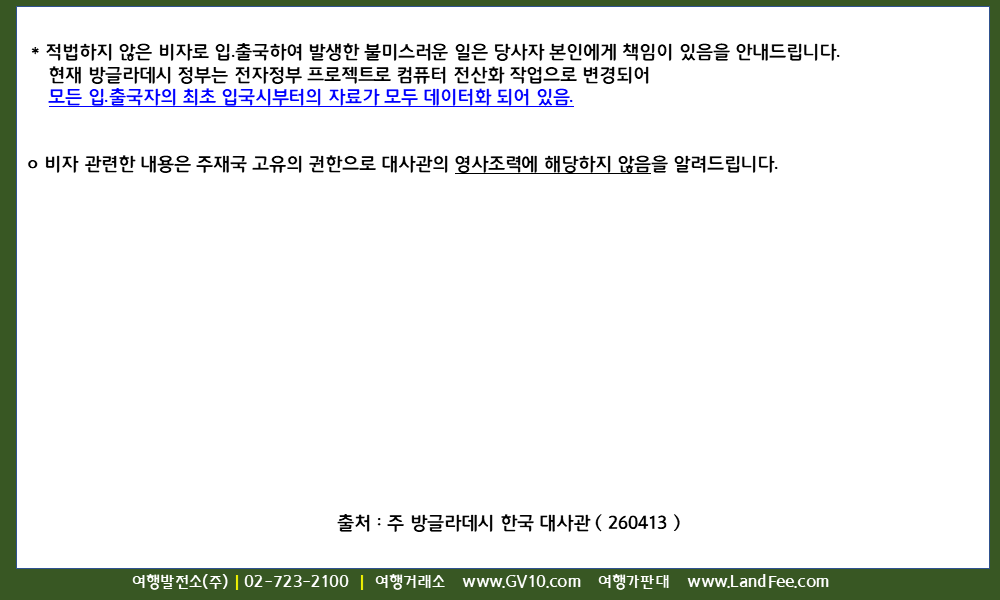 [방글라데시] 방글라데시, 도착 비자 발급 정보 - 26년 4/13 현재