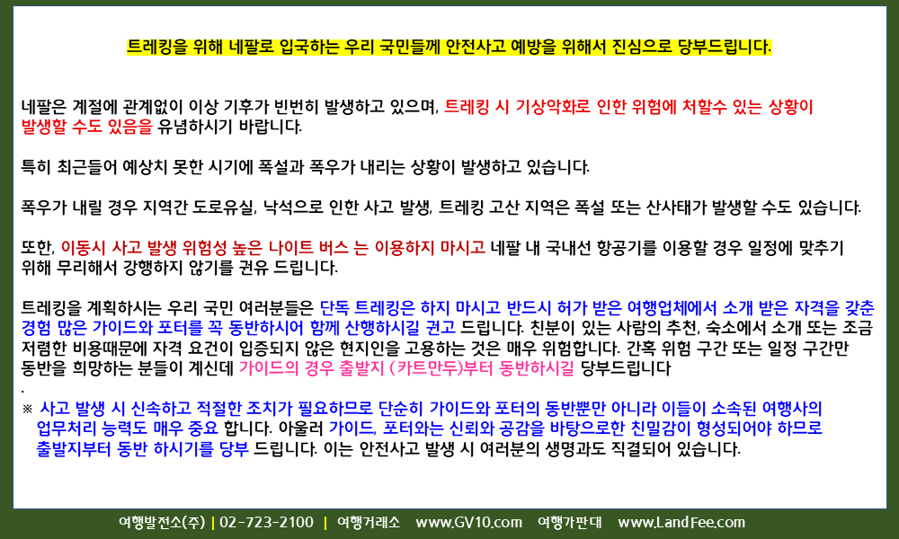[네팔] 네팔, 트레킹 안전사고 예방 정보 - 25년 4/21 현재