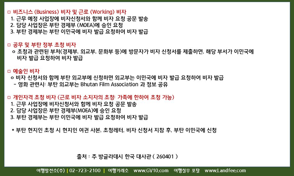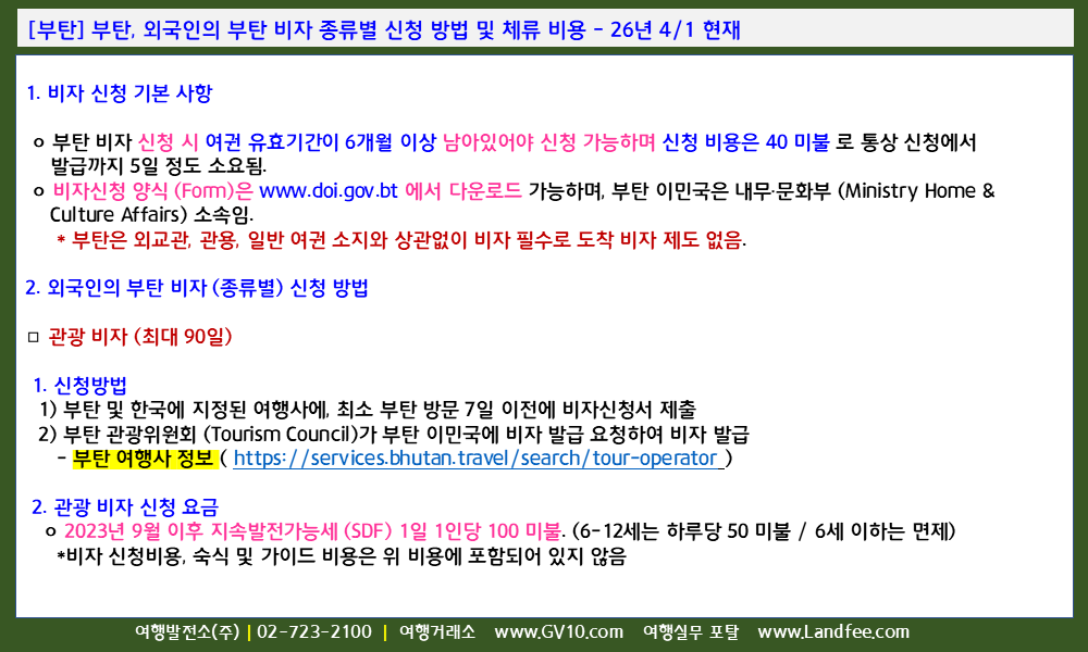 [부탄] 부탄, 외국인의 부탄 비자 종류별 신청 방법 및 체류 비용 - 26년 4/1 현재