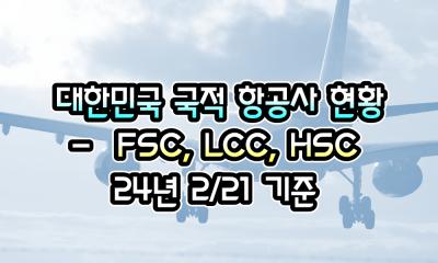 [항공상식] 대한민국, 국적 항공사 ( FSC, LCC, HSC ) 현황 ( 여객기 기준 ) – 24년 2/21 현재